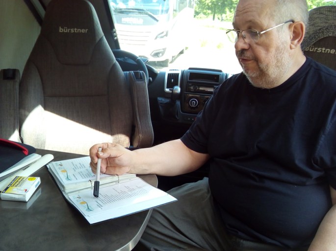 Auf dem Stellplatz am Heidenhof haben wir es uns noch gut 1 Stunde in der Sonne gemütlich gemacht. Wobei wir uns einen Teil unserer Einkäufe bei Wein und Bier schmecken liessen.