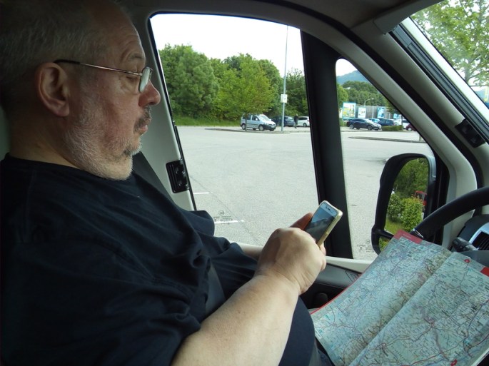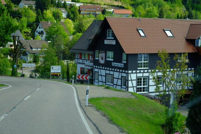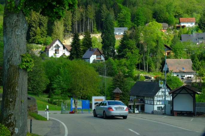 Nach kurzer Zeit kam ein Hinweis auf die Fachwerkstadt Sasbachwalden. Hörte sich gut an und so sind wir kurzerhand abgebogen. Die Abfahrt über Serpentinen ins Tal war nicht ohne. Hier habe ich zum ersten Mal die Automatik des Ducato verflucht. Bereits auf der bisherigen Fahrt war mir das Schaltverhalten der Automatik negativ aufgefallen. Ein Gangwechsel fand immer in den ungünstigsten Momenten statt. Doch hier bei der Bergabfahrt war es das reinste Chaos. Bei dem bis zu 14% Gefälle musste ich natürlich ständig abbremsen, wobei die Automatik jedes Mal so weit runter schaltete, dass der Motor ständig am aufheulen war und die Getriebebänder anfingen zu stinken. Wir waren heilfroh, als wir endlich unten ankamen. Auf dem ersten Parkplatz in Sasbachwalden haben wir dann erst einmal alles wieder abkühlen lassen.