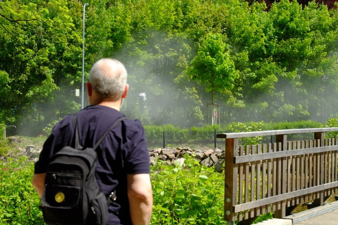 Kurz hinter Baden-Baden entdeckten wir die Geroldsauer Mühle. Was war denn da los? Viele Menschen und grosse Parkplätze. So haben wir uns auch einen Parkplatz gesucht, um mal zu schauen was es dort gibt. Das parken mit dem 640er war kein Problem. Einfach das Heck über einen Grünstreifen drüber und wir standen perfekt in der Parkbucht.
