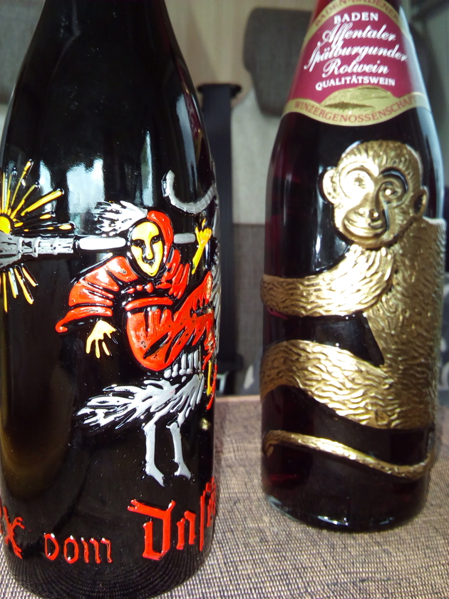 Bei dem weiteren Rundgang durch den Markt kamen dann noch weitere Leckereien wie: Jagdstangen vom städtischen Forstamt, Wildbratwurst, Bermersbacher Ziegenkäse, Heidelbeerwein und Geroldsauer Mühlenbier in den Einkaufswagen. Und natürlich dürfen auch zwei ganz spezielle Weine aus der Region nicht fehlen; die Hex vom Dasenstein und der Affentaler in den markanten Glasflaschen.
